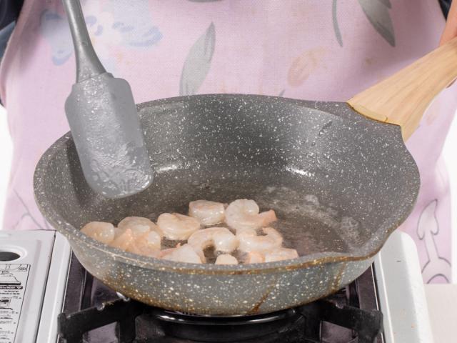 2. 虾洗净后吸干水分,加入米酒腌制 15 分钟,去除腥味,改善口感。