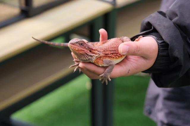 “这只鬃蜥蜴叫鬃蜥蜴,是一种半地栖性动物,是一种日行动物,喜欢晒太阳……”在萌宠园的玻璃景观中,一只平静而威武的鬃蜥蜴正在转动眼睛,不停地看着周围的环境。工作人员正在普及游客的爬宠常识,鼓励游客用手触摸,通过“零距离”接触学习,帮助游客打开探索爬宠物世界的大门。