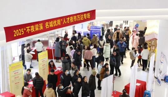 2025年“不夜梁溪” 梁溪万达广场首届名都优岗人才夜市活动开幕。本次活动由梁溪区人力资源和社会保障局主办,以接地气的方式为就业服务“聚人气”,搭建企业与各类人才高效对接的桥梁,促进高质量、充分就业。