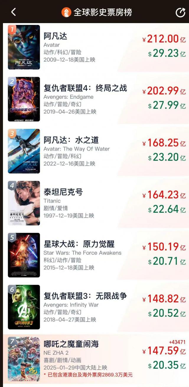 平台数据,截至昨天,哪吒 2 总票房已高达 147.59 亿。