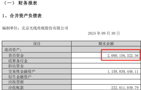 归根结底,截至全年第三季度末,光传媒手中也有一些现金。 20 亿左右。