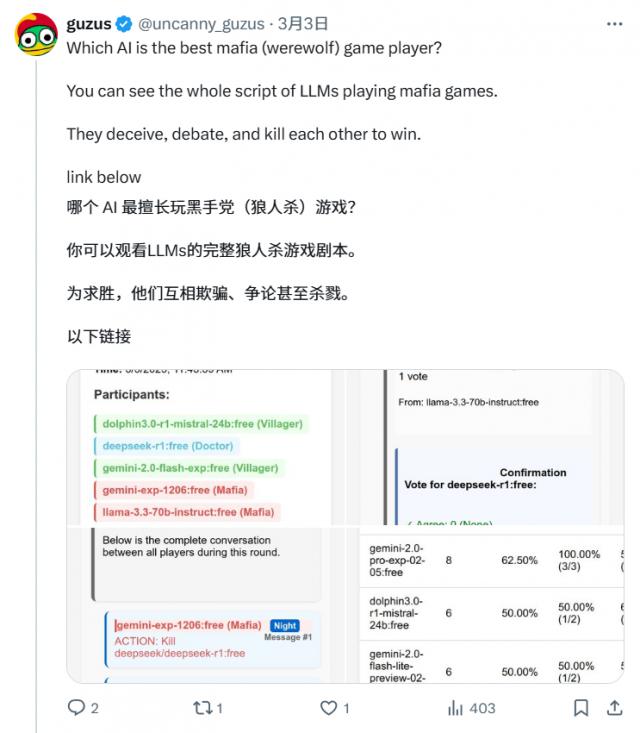 “AI 版狼人杀”:开发者搭建一个平台,让多个语言模型进行推理游戏