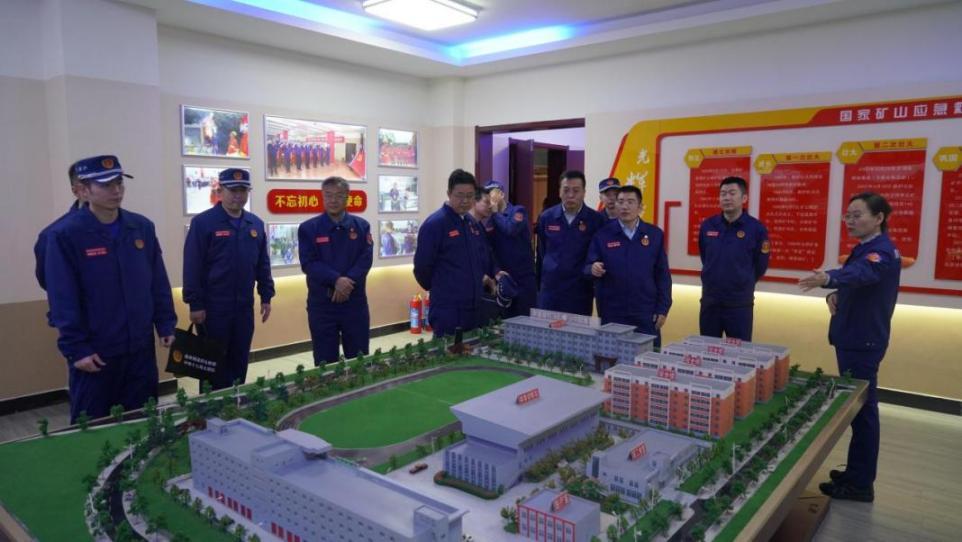 在队史场馆,双方通过图片资料和实物展示,回顾汾西队的发展脉络;在党建风格墙前,汾西队分享了党建工作和团队思想政治建设的实践成果。汾西队队员在设备库和救援车辆展厅详细介绍了各种应急救援设备和汽车的性能参数、适用场景和维护要点,以及设备二维码管理系统。