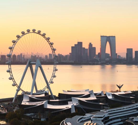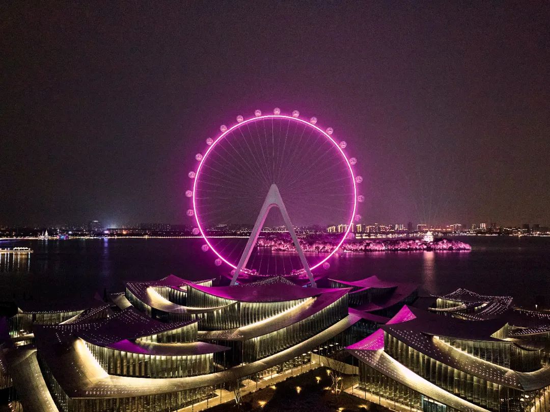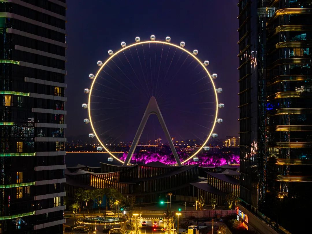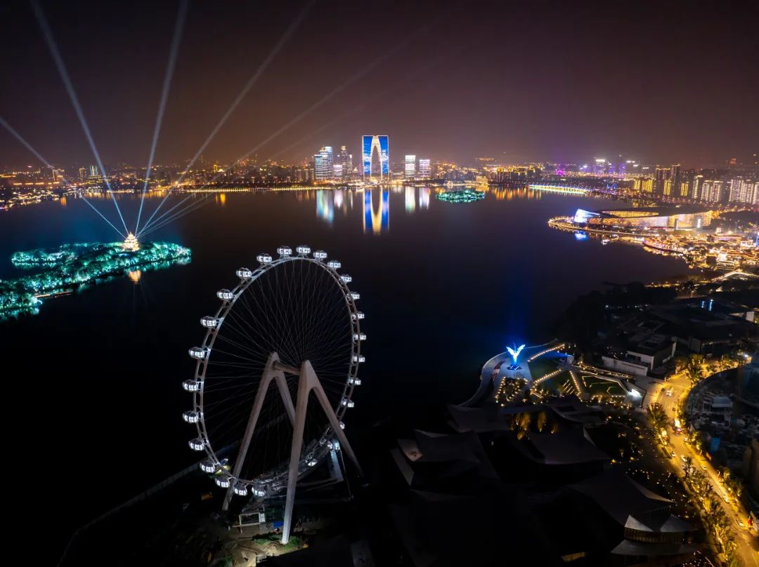 2023年1月,金鸡湖右岸地区(文化走廊)项目启动,金鸡湖摩天轮升级改造项目也全面启动。中锐集团开发的这款全新摩天轮,不仅继承了“金鸡湖之眼”的浪漫基因,还巧妙地融合了苏州深厚的文化底蕴和开放包容的现代气质。