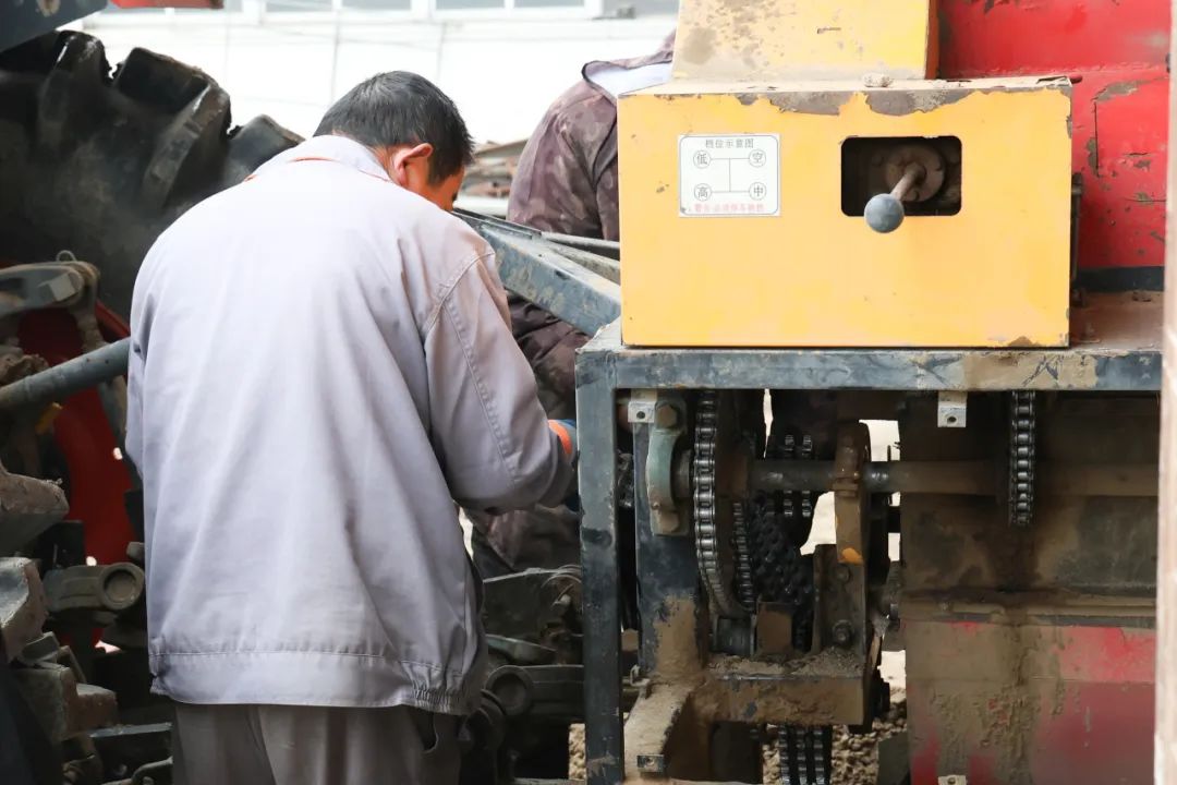 除了粉土,农业机械维护也是耕作前的重点任务。在合作社的仓库里,微耕机、插秧机、直播机排列整齐,工人们正在仔细更换磨损的镰刀,检查轮胎油箱,给油换油,以确保农业机械以最佳状态投入耕作。