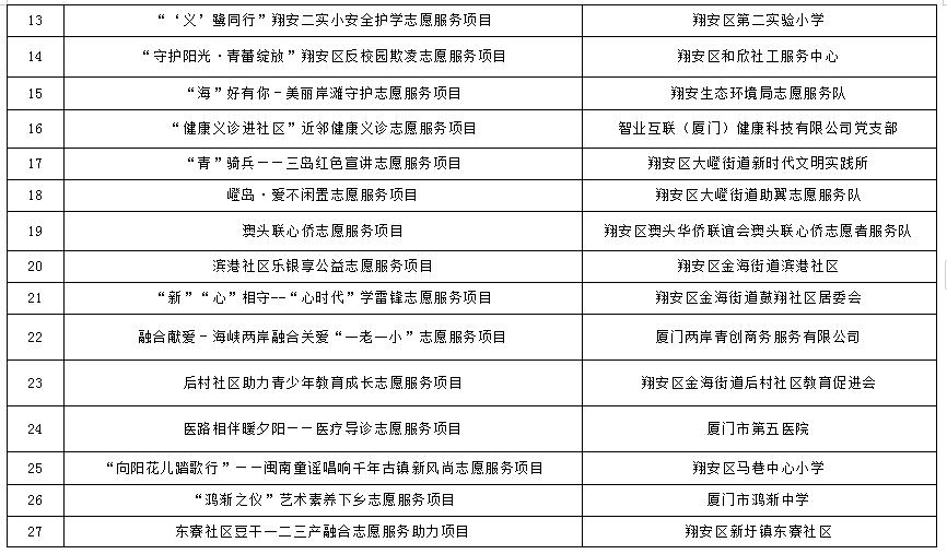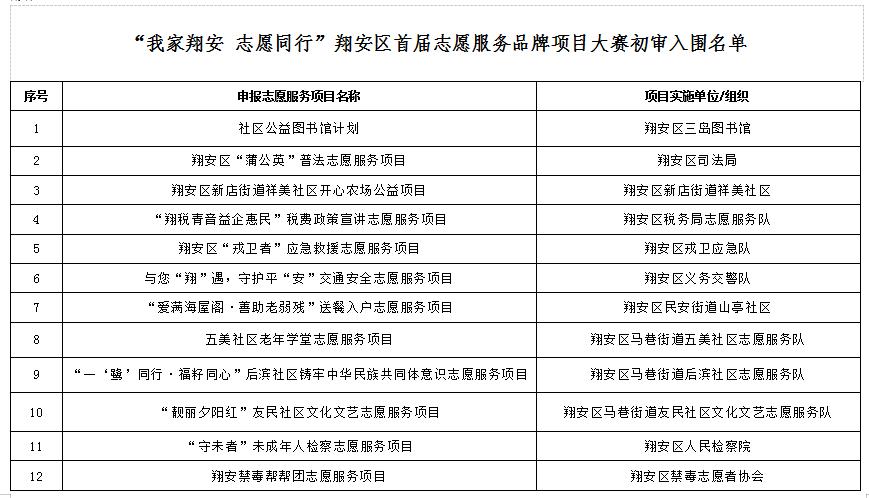 经过项目选择、数据审查和集中审查,30个项目脱颖而出,充分展示了翔安区志愿服务的多样性和多样性。后续专业导师将对入选项目进行精准辅导和贴心陪伴,重点加强品牌建设、项目宣传展示、路演推荐等。,不仅提高了项目的竞争力,也不断提高了志愿服务团队的专业水平和服务质量。