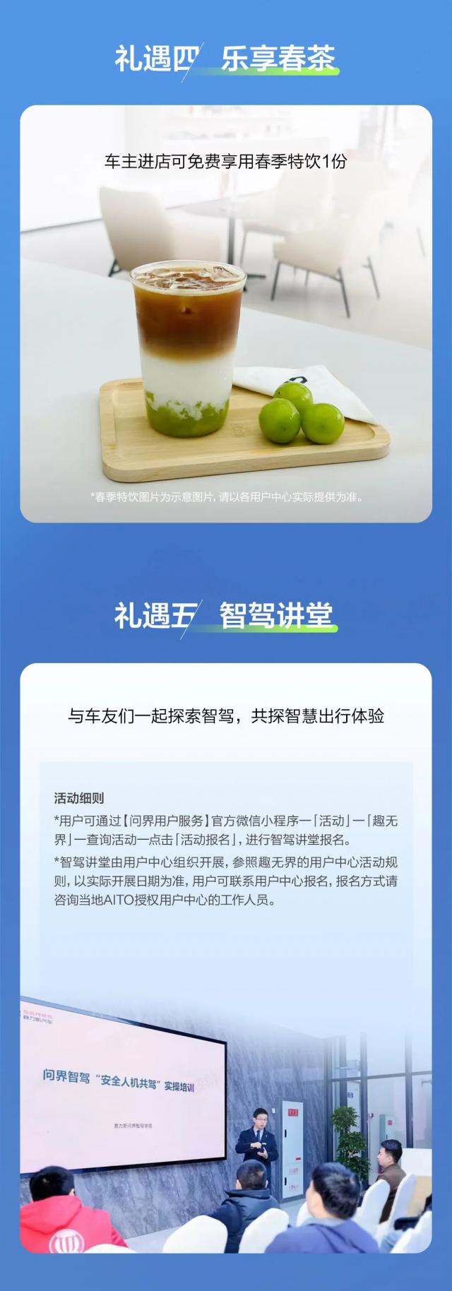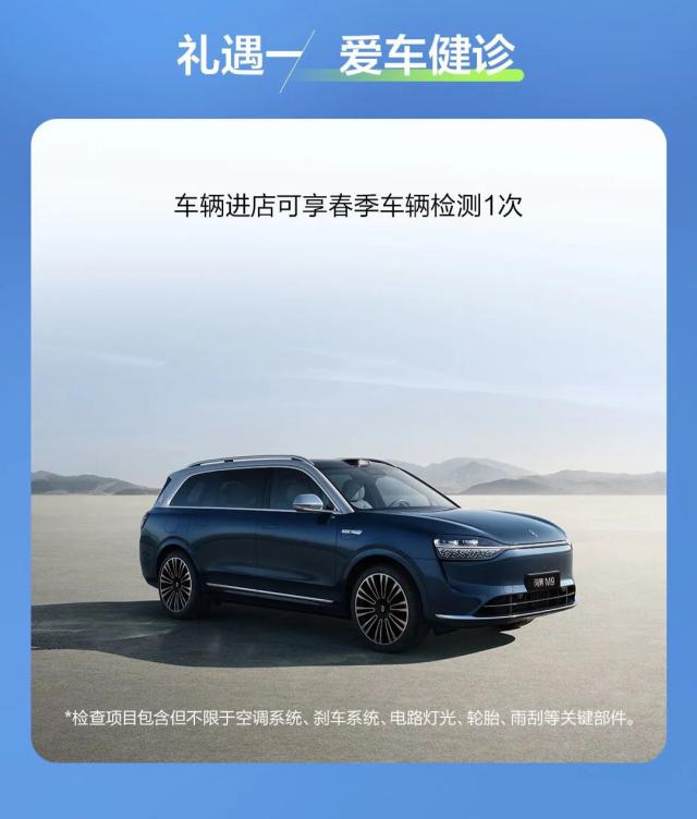 IT 世家得知,入店车辆可享用。春季检查车辆 1 次,检查项目包括但不限于空调系统、制动系统、电路照明、轮胎、雨刮器等核心部件。此外,进入商店的车辆可以原玻璃水的免费添加 1 次;入店者还可以在春季免费获得一份特饮。