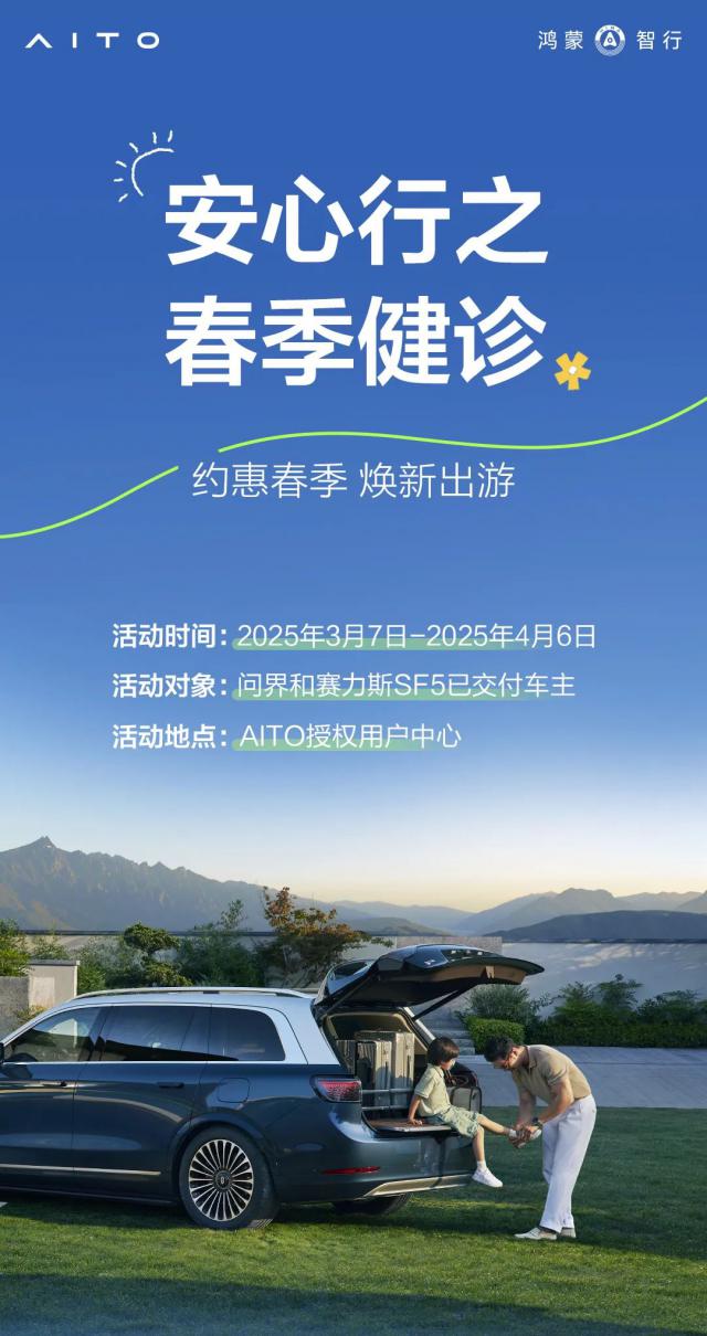 IT 世家 3 月 9 日消息,重庆问界汽车销售有限公司本周(3 月 7 日本)发布文件宣布,春季服务活动正式开始,活动时间 2025 年 3 月 7 日 -2025 年 4 月 6 日。