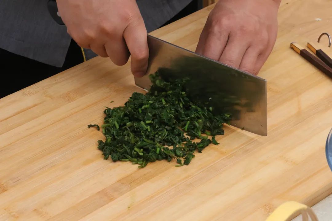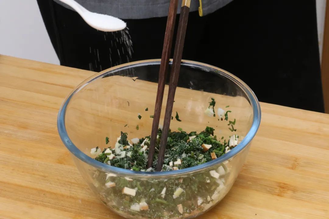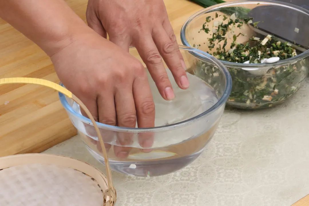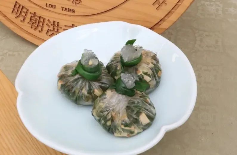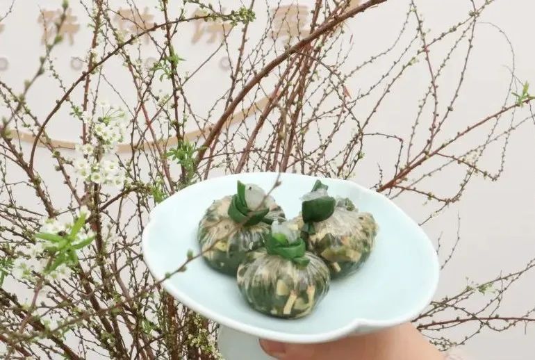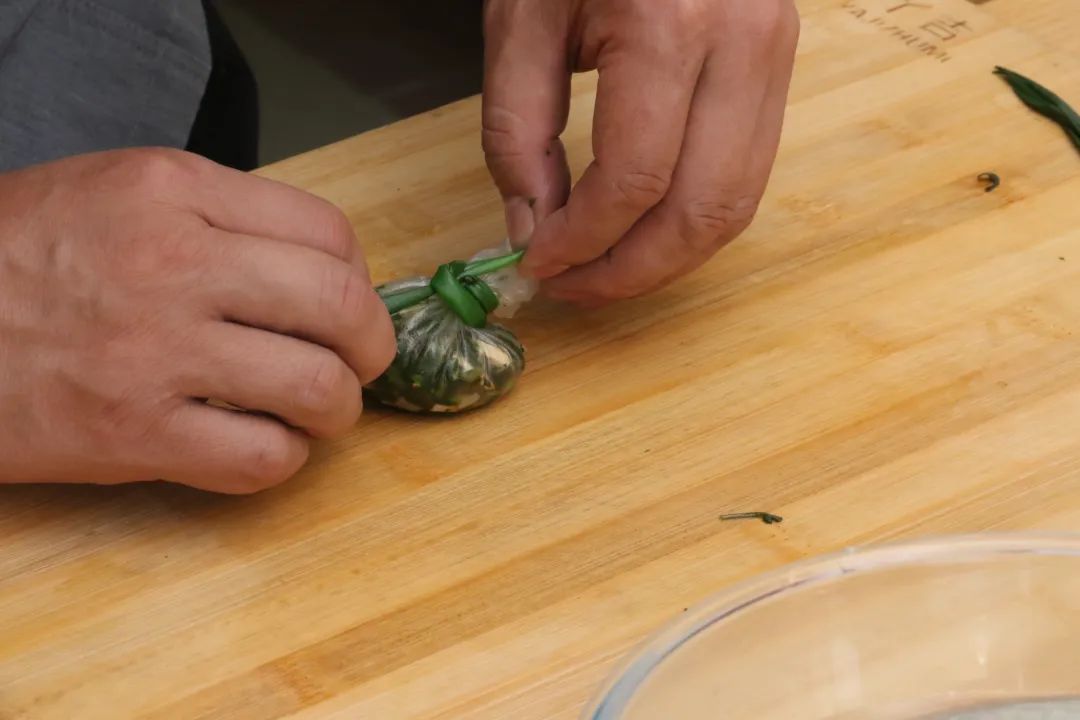 重复包装2个,摆盘。一个香喷喷的春菜福袋就完成了。