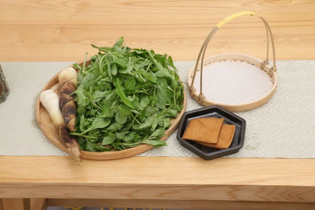 马兰头、春笋、豆腐干、泰国春卷皮、盐、糖、酱油、芝麻油、味精、醋、葱叶