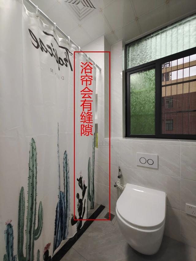 另外,卫生间安装浴帘洗澡时,两边的缝隙很容易溅出来,所以建议卫生间一定要有刮水神器,这样每次洗澡后都能快速刮干淋浴区外的墙壁和路面。