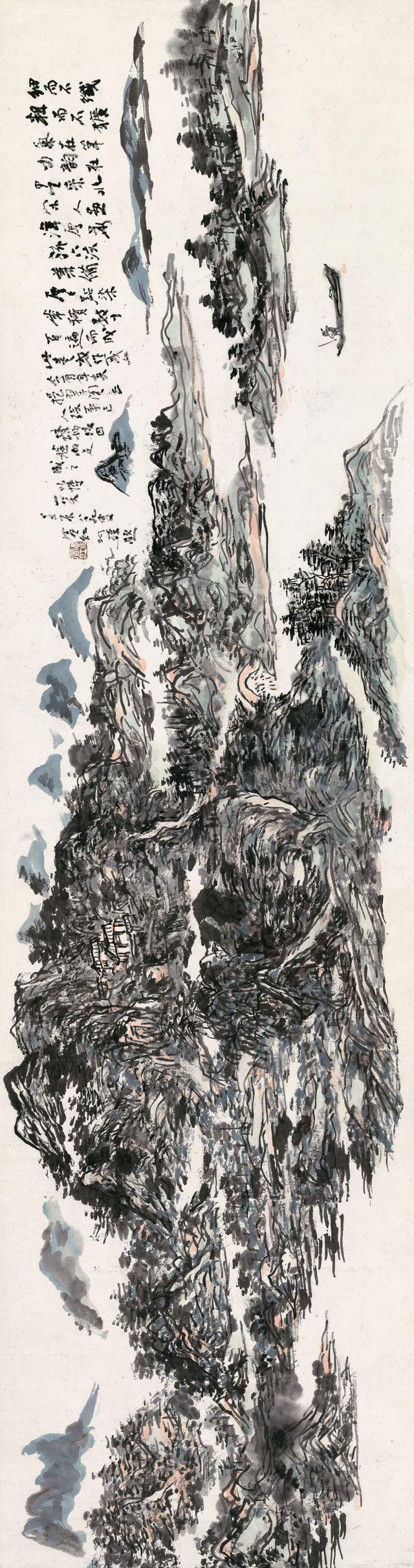 题跋《山川卧游卷》:细而不纤细,粗而不崎岖。气在笔力,韵在墨采。宋代人画,丰富华丽,立法兼备,层层染色,常积数十百次。今年已经是这本书了。一翠阁的主人画得很好,因为捡起来就足够了,带着微笑。仁辰八十九岁,宾虹解冻问题。