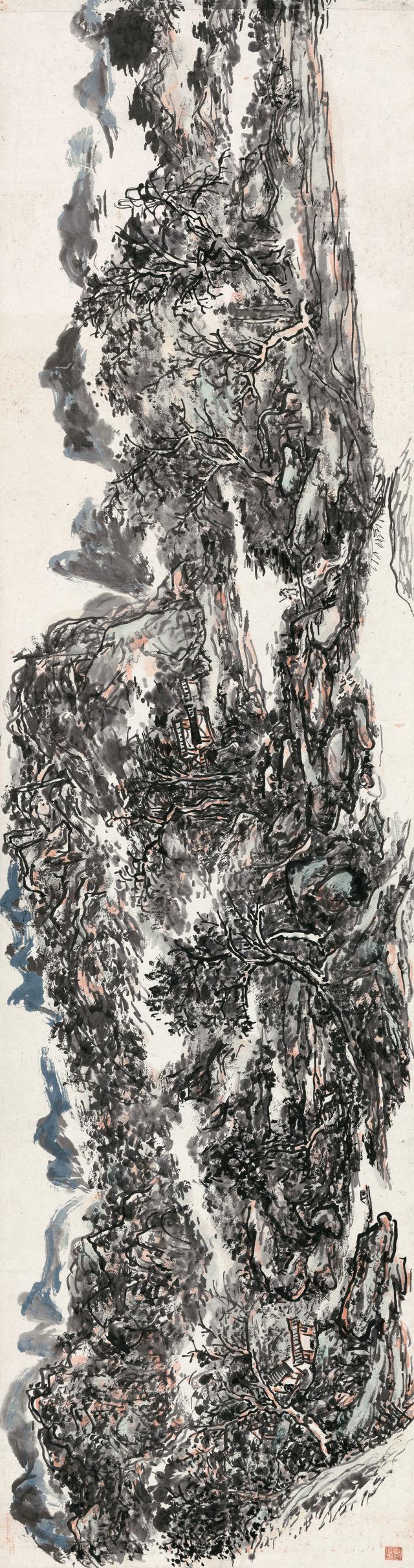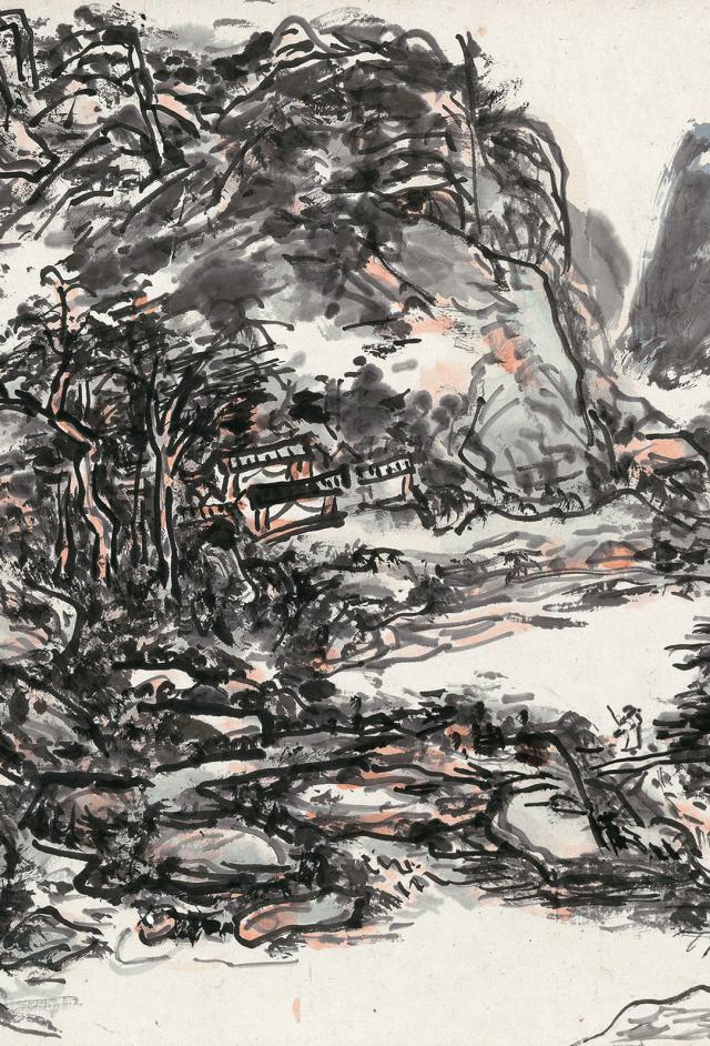 展览《山川卧游》充满了“参差离合,大小倾斜,胖、瘦、短、长,不均匀”(黄宾虹语)的点和线,满满的树不树,山不山,水不水,几乎都是活泼、活泼、呼吸的书法线条。这些书法线条通过浓墨、淡墨、破墨、泼墨、焦墨、宿墨、污墨、积墨等方式的交互,形成了一个有趣的宇宙形象。远远望去,树屋山石,记忆犹新,画面上的书法线条融合成一幅自然的画面。