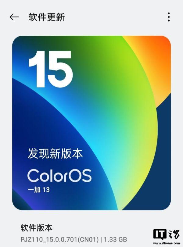 一加 13 手机获 ColorOS 15.0.0.701 版本更新