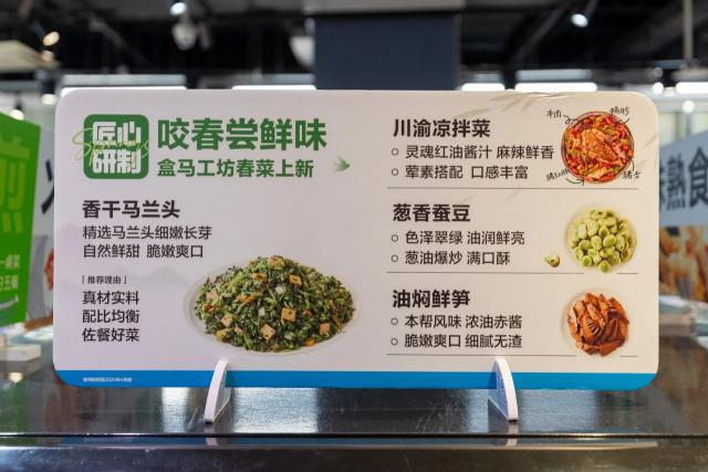 走进盒马鲜生(红莲店),记者看到超市专门设立的“春菜柜台”上摆满了各种春菜、红香椿、枸杞叶、芦笋头...每一种都很新鲜,散发着春天的气息。