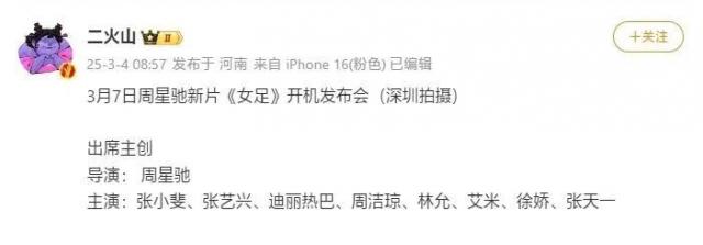 最近,一部关于周星驰的新片少林女子足球队这个消息在网上爆炸了。计划了两年,终于要开机了,演员阵容一曝光,立刻引起了热议。