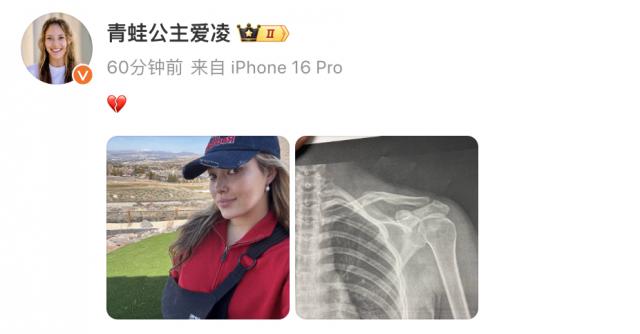 3 月 9 日本,中国自由滑雪名将谷爱凌晒肩。 X 光片,配上一副心痛的表情。� � 。这部电影的日期是 3 月 4 日本,目前还不知道谷爱凌这次受伤是新伤还是旧伤。谷爱凌上个月在训练中不幸再次受伤,宣布不得不退出亚冬会。