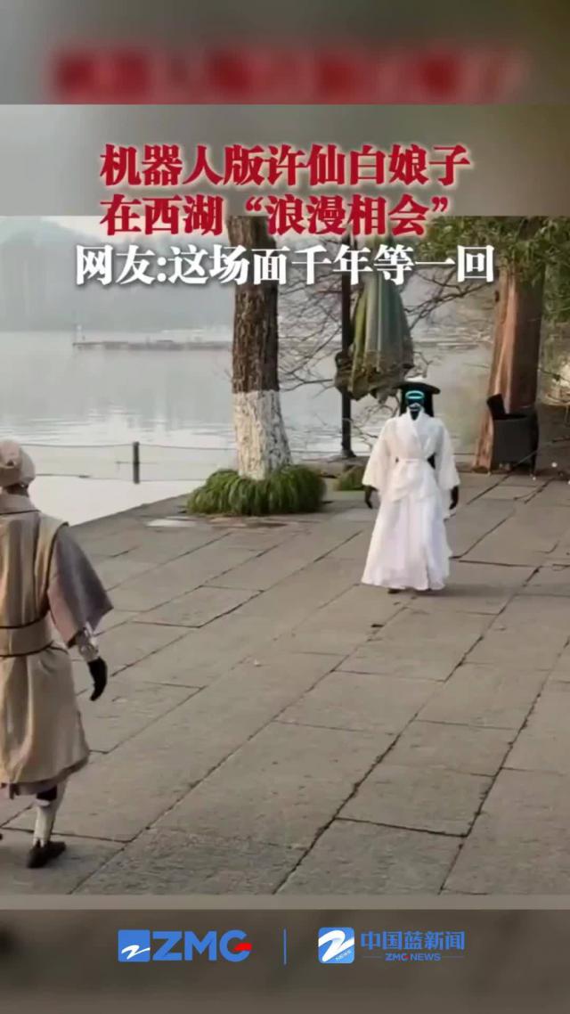 IT 世家 3 月 9 据上游新闻报道,每日新闻 3 月 8 日报道,近日,机器人版许仙和白娘子在西湖“浪漫聚会”,最后只是握住了一只手。这个是央视总台的“胜利” AI 》栏目组在西湖边拍摄,导演用机器人再现了《新白娘子传奇》的著名场景。