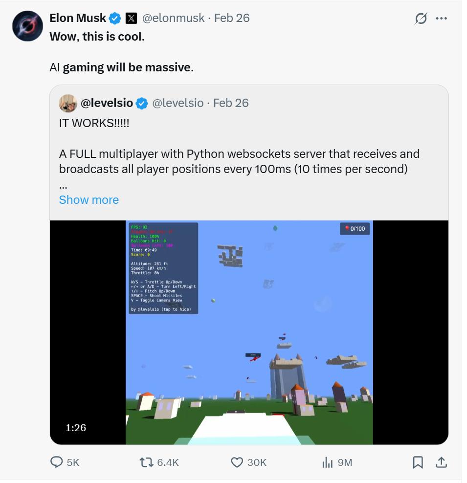 就连马斯克也忍不住感叹:“AI 这个游戏的前景是无限的!