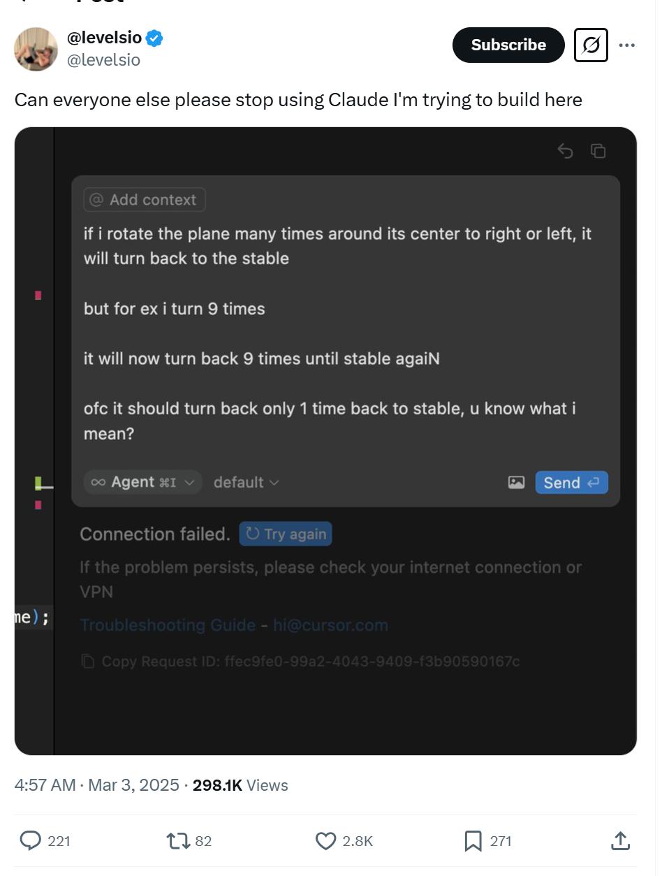 通过多人模式,他也尝试启用多人模式 Grok-3 生成了一个 Python WebSockets 服务器,每 100ms(每秒 10 第二)接收和播放玩家的位置。