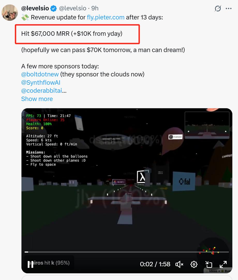 受到 Pieter Levels 受到启发,越来越多的人开始使用它 AI 玩游戏的工具。