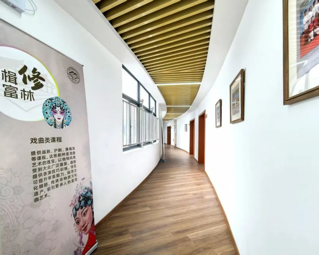 去年11月,广富林街道社区学校是松江区新开设的社区学校之一。据学校常务副校长朱亚勤介绍,今年春天,学校开设了23门课程,涵盖养生、字画、音乐、戏曲、休闲、时尚、科技七门课程。这些课程依托“同富林”品牌下的七个空间,分别是康康课堂、书坊、音乐舞台、美丽秀场、修剧院、创意实验室和有趣的室外。随后,学校还将打造集智能家居、AI下棋于一体的智能教育场景。