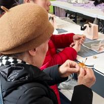 姐妹们在老师的指导下,纷纷尝试。拧线时力度要对称,剪瓣时要注意视角的准确性。虽然初学者不容易,但现场温馨融洽:有人专注于调整花瓣的弧度,力求形神兼备;有的人大胆创新,把花瓣做成不同的形式;几个聪明的姐姐主动做“临时助教”,大家积极交流,互相帮助,玩得很开心。不久之后,这个素雅的,那个俏皮的,各式各样的绒花渐渐在姐姐们手中绽放。