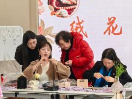 三月八日下午,文教街道大闸社区妇女儿童驿站温馨开启了一场别具一格的非遗文化体验活动。——「“江”来无限,“驿”起成长起来」第五场系列活动「指尖生花·“绒”情绽放。」制作沙龙的绒花。本次活动以庆祝国际妇女节为契机,邀请社区20名女性居民前往传统工艺与女性趣味的浪漫约会,在丝线之间感受非物质文化遗产之美,传递节日祝福。
