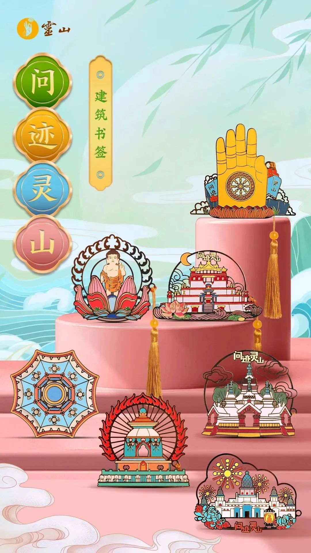 询问灵山冰箱贴纸,以灵山景区建筑为设计核心,采用鲜艳明亮的色彩组合,做工精致,细节完美,艺术感十足,让人瞬间梦见灵山壮丽的风景。
