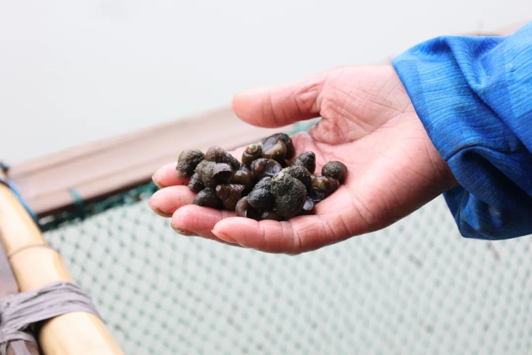 “蜗牛其实并不难,只要控制好蜗牛网在水中的高度就可以了。如果高,很容易不到蜗牛。如果低,很容易带动河里的污泥。”沈阿姨展示了刚捞出来的蜗牛,说:“这个时候,蜗牛不仅肚子里没有种子,而且肉质肥美。放在锅里炒一下就可以早点尝试了。”