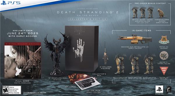据悉,官方还公布了《死亡搁浅》 2.对于数字豪华和实体收藏的内容,购买数字豪华的玩家将获得一套外骨骼、枪支的初始解锁和各种小挂件,并在预订时获得一套外骨骼。