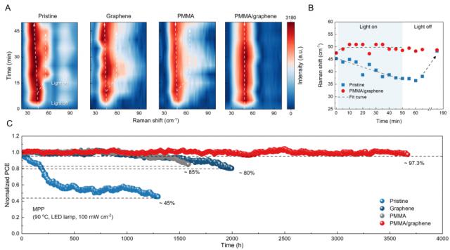 研究表明,作为光伏电池的重要组成部分,钙钛矿材料在水氧、光照、高温、电场等环境因素的影响下,表现出典型的软晶格特征,易发生化学分解和结构衰退,导致器件效率大幅下降。。