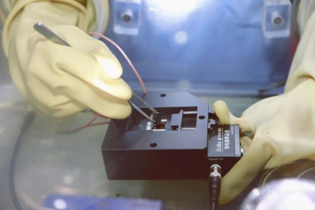 ▲ 团队成员检测钙钛矿太阳能电池的光电性能