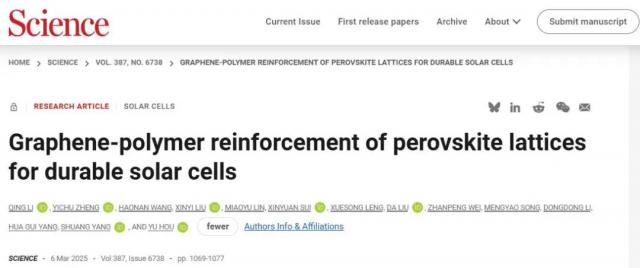 ▲ 石墨烯 - 实现钙钛矿太阳能电池寿命的高聚物藕合界面的新突破