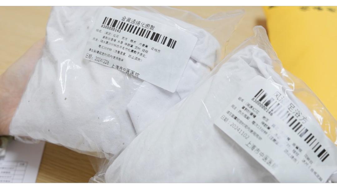 医院风湿病科主任医师陈薇薇诊断李女士后,出具了口服中药,并在合谷穴敷了穴位。随后,陈薇薇向随后就诊的患者薛先生开了泡洗中药,帮助薛先生缓解“下肢冷痛,明显感冒,膝关节时有疼痛”的问题。