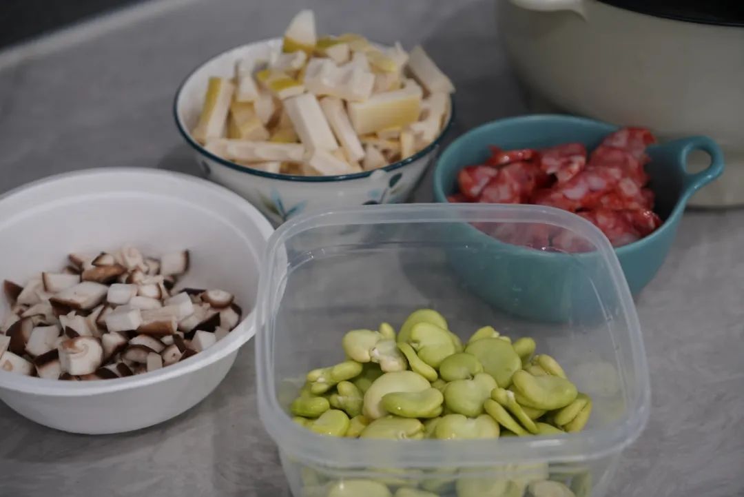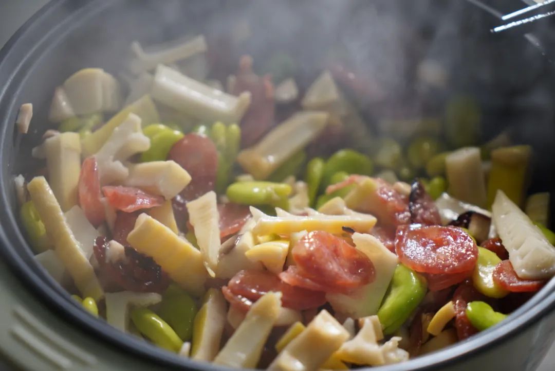 冬天的醇厚与春天的清新交织在一起,舀一勺限量版的春味,鲜脆可口的春笋,甜糯的蚕豆,鲜嫩的蘑菇,咸香油润的香肠,瞬间充满了春天的仪式感。