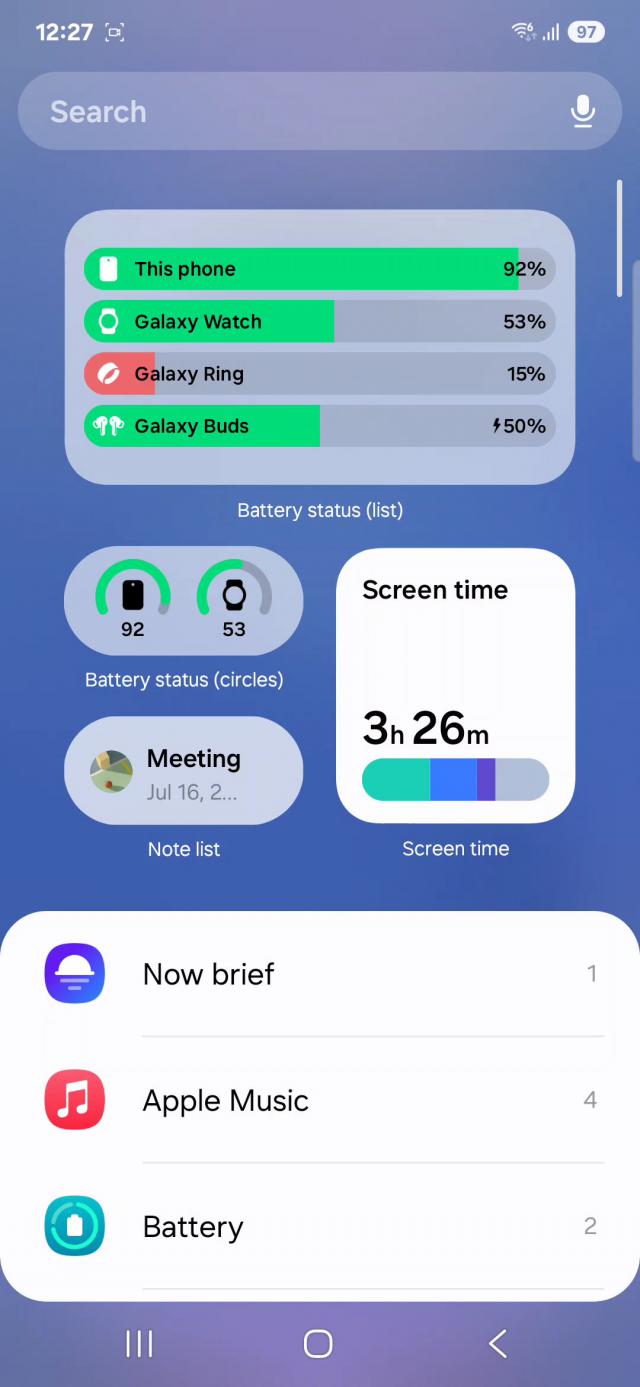 IT 世家注:谷歌虽然还没有公布具体细节,但是可以堆叠小零件的功能可能和三星设备上的实现方式差不多。用户可以在主屏幕上放置一个小零件,长按后选择建立堆叠,并在当前的小零件上添加多个小零件。