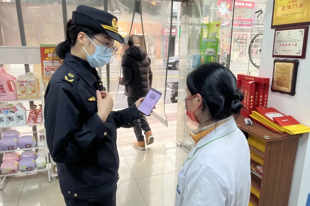 在五角场辖区内进行药械化检查时,执法人员严格遵守“亮证亮码”程序。比如检查人员在检查肺科医院旁边的一家药品零售企业时,主动出示“检查码”。扫描代码后,公司工作人员可以清楚地了解检查内容、依据和检查人员的信息,整个检查过程公开透明。这样既保证了公司的知情权,又规范了执法行为,提高了执法公信力,使企业更加了解和配合执法检查工作。