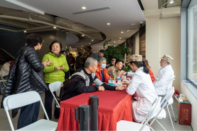 同样温暖的医疗服务区域。来自瑞金医院远洋医院、博爱医院等医疗机构的医生为居民提供心理咨询、糖尿病咨询、中医脉搏等免费专业服务。面临着络绎不绝的顾问,医生们耐心地回答健康问题,并对个人情况提出详细的建议。同时,上海市慈善基金会“凡人善举”爱心窗口的义卖区爱心涌动,志愿者们热情地介绍“助学梦”等公益活动。湖南街道的“阳光宝宝”化身为“摊主”,在摊位上摆放自制的编织饰品等手工艺品,与前来的居民分享自己的制作经验。