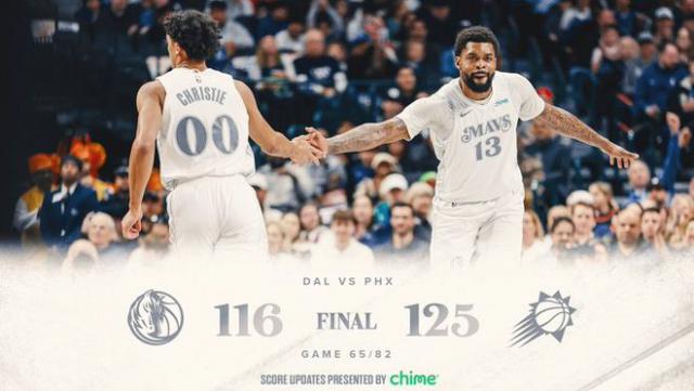 太阳进一步缩小了与他们的差距,因为独行侠输掉了这场关键的卡位战。现在太阳 30 胜 34 负,独行侠 32 胜 33 输了,两队的胜场差只有两队的胜场差。 1.5 场了。