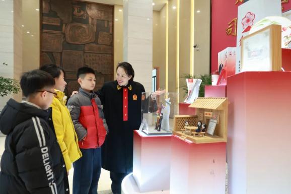 刘永红,四川省高级人民法院法官,带着孩子们参观法院。