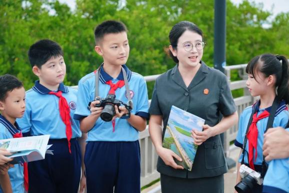 在生态公园,厦门海事法院法官王岩为儿童普及环境保护知识。