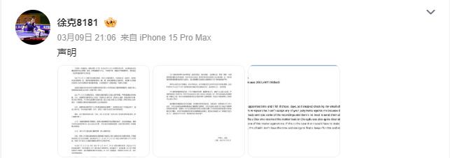 北京时间3月9日,乒乓球教练、田志希丈夫徐克发表声明称,涉嫌性骚扰被禁赛10年,称之前的判决严重颠倒事实。