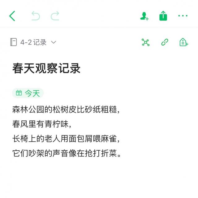 上班路上收起耳机,把目光从手机屏幕转移到街角的树梢、墙缝的杂草、小区绿化带的灌木丛上。当你发现今年第一朵花(无论是玉兰花、樱花还是不知名的野花)时,立即用手机拍下来,在印象笔记上创建一个新的「春日相册」做笔记,记录位置,天气和那一刻的情绪。