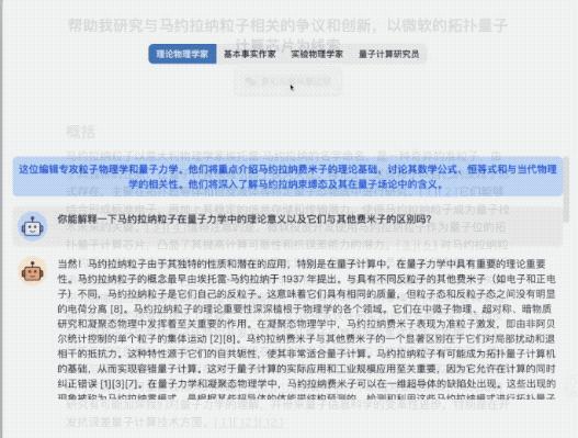 它就像一堆很有耐心的导师,可以陪你讨论,调整研究内容,深入挖掘重要信息点。