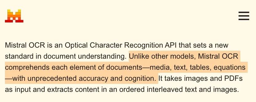 第一个是个 OCR 工具,简单来说就是图片识别转换,可以把你的 PDF 转换成可以直接复制粘贴的 Word 版本。这个东西昨天刚发布,一上来就被称为“世界上最好的文档理解” API",是一家法国公司制造的。