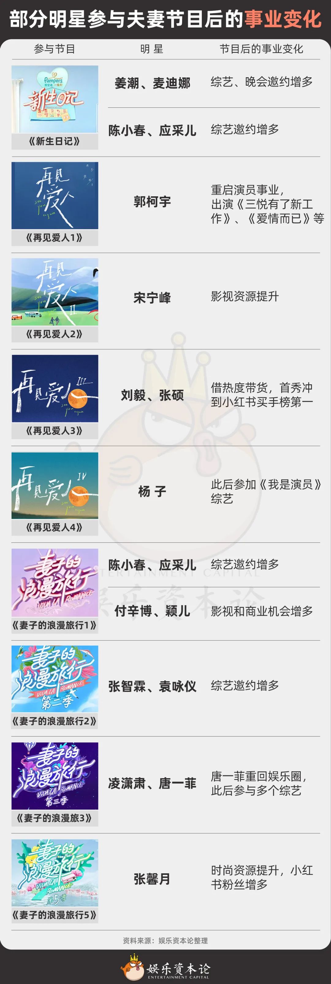 对于明星来说,夫妻综艺节目往往只是工作努力的起点,后续的发展取决于明星的价值延伸能力。