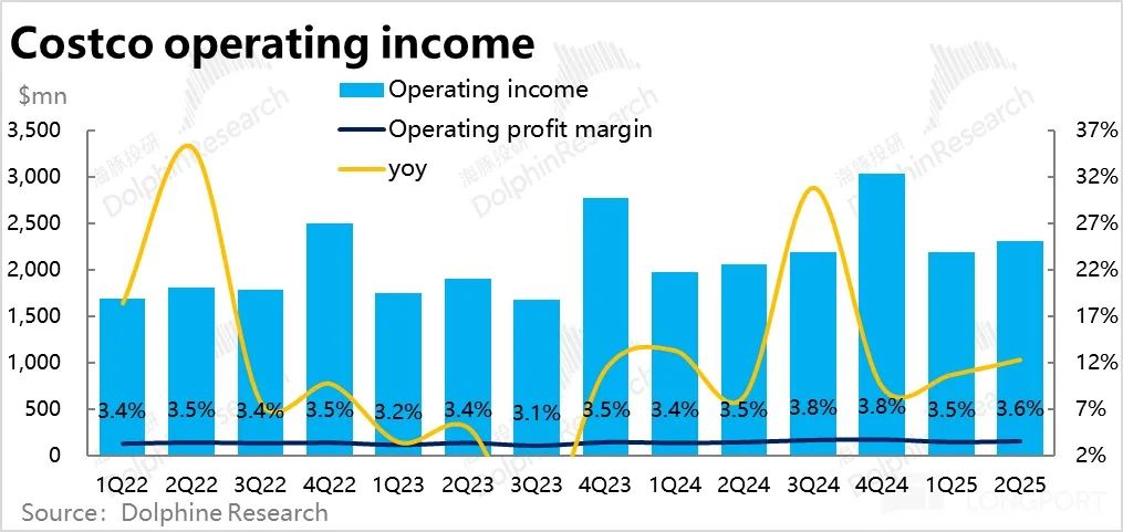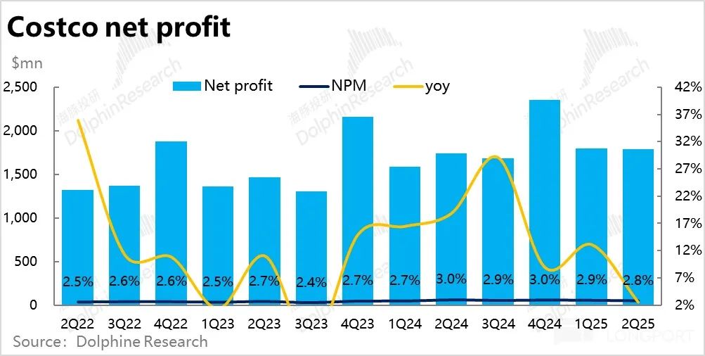 就像公司以前的做法一样,Costco 作为仓储折扣零售的绝对领导者,其优势在于其业绩的稳定性和穿越经济周期的强大增长能力。总的来说,在消除税费的影响后,无论是收入增长端还是利润端,这份财务报告仍然顺利交付。 8%~9% 同比增长的良好表现。就过去的表现而言, Costco 仍然没有发现任何问题。