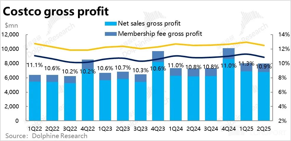 5、财务指标方面,本季 Costco 实现总收入 637 亿,同比增长 9%。从毛利的角度,本季度产品销售毛利率为 10.9% 同比略有改善 与上季相比,0.05pct 0.23pct 增加幅度缩小了。