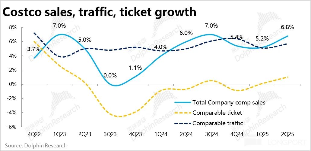 同样按价格分割,本季度,美国地区同店客户数量同比增长 2.6%,这是 22~23 财年(上一次通胀&加息周期)至今,首次出现 1% 上述客单数量增加。好像这表明消费通胀压力再次上升。